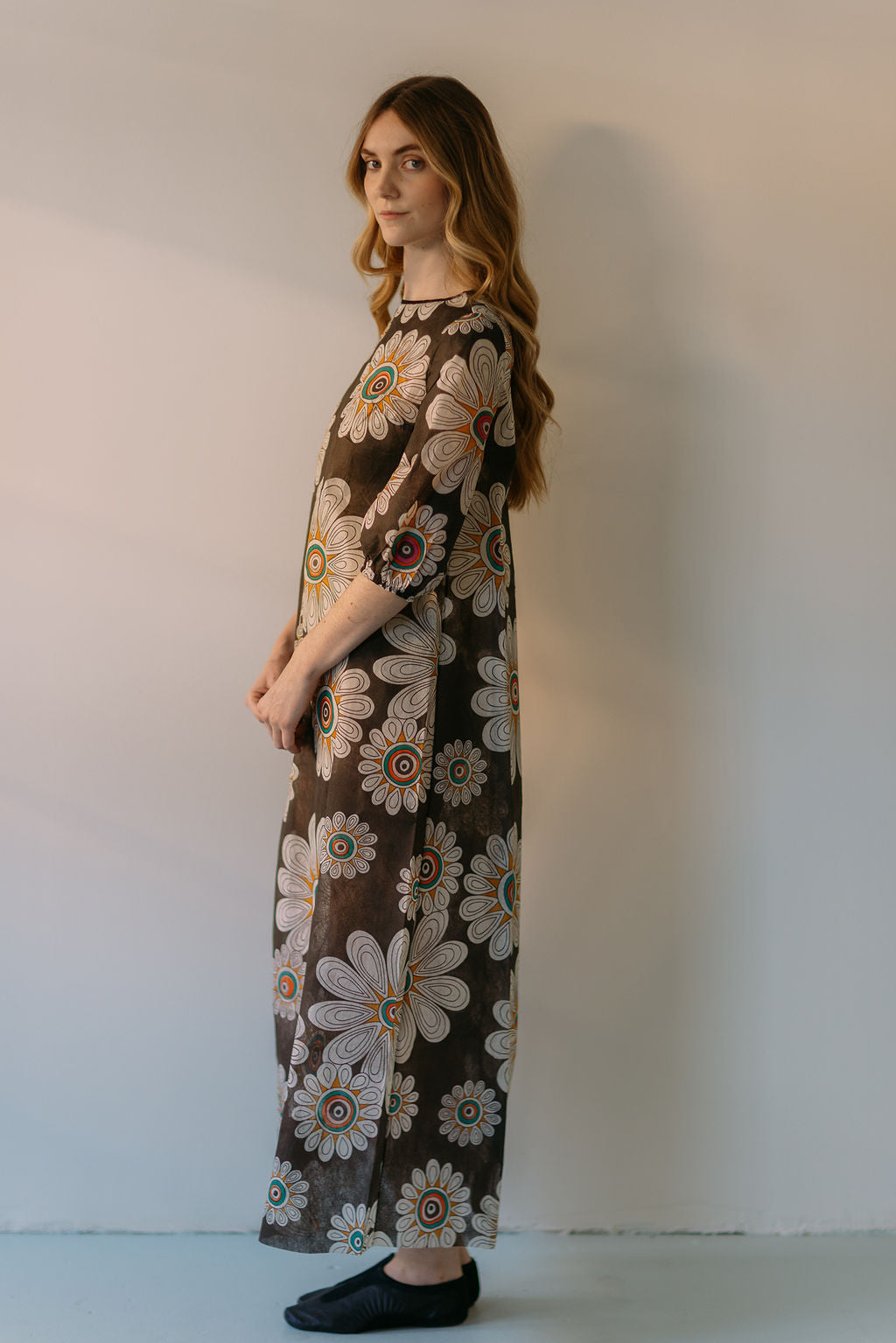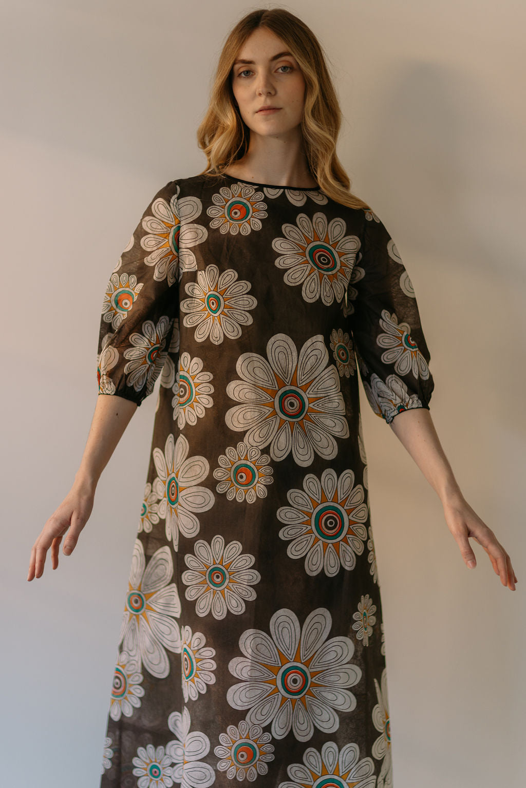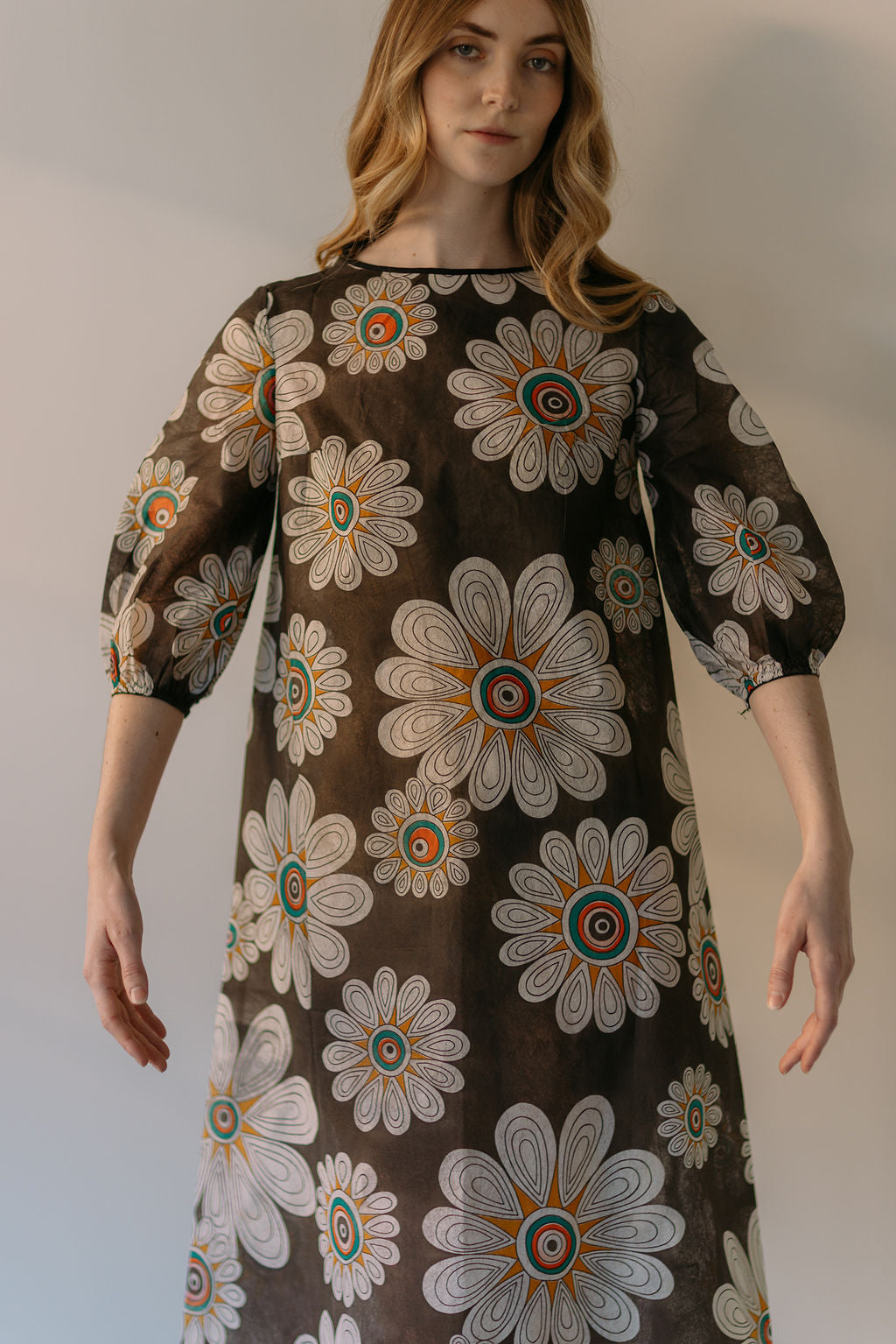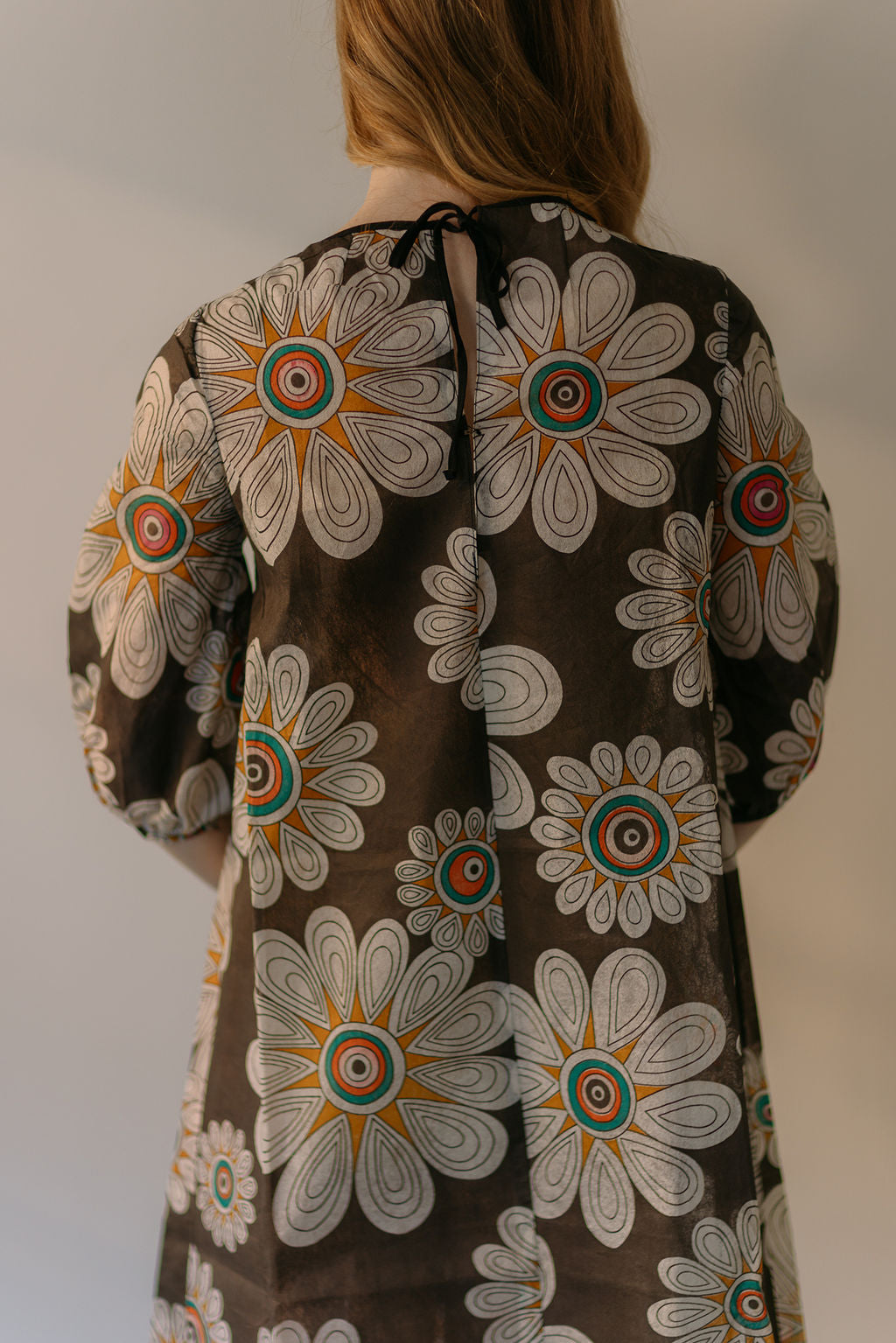 A rare floral printed paper dress, iconic and collectible. Made by James Sterling Paper Company NY.