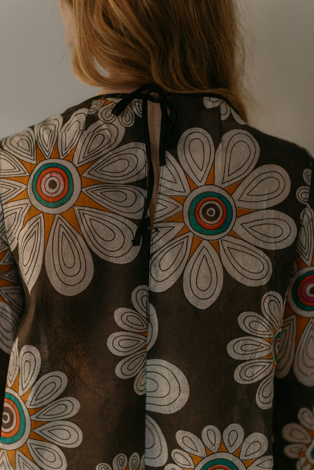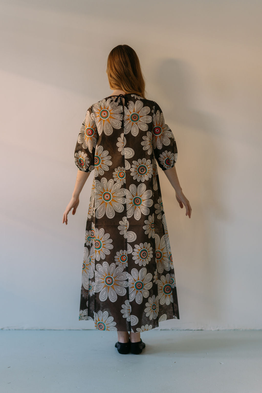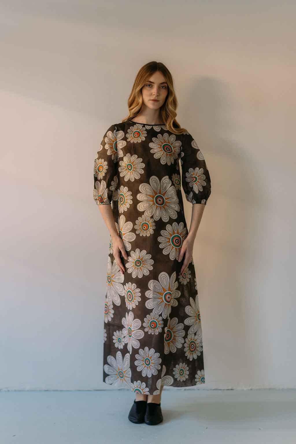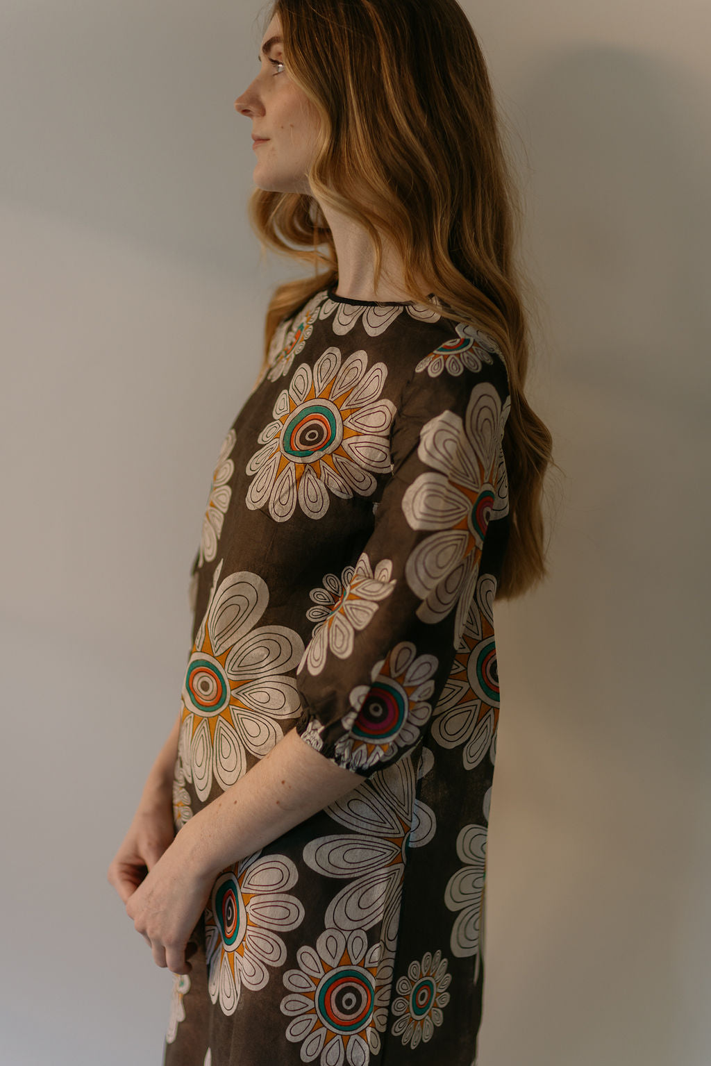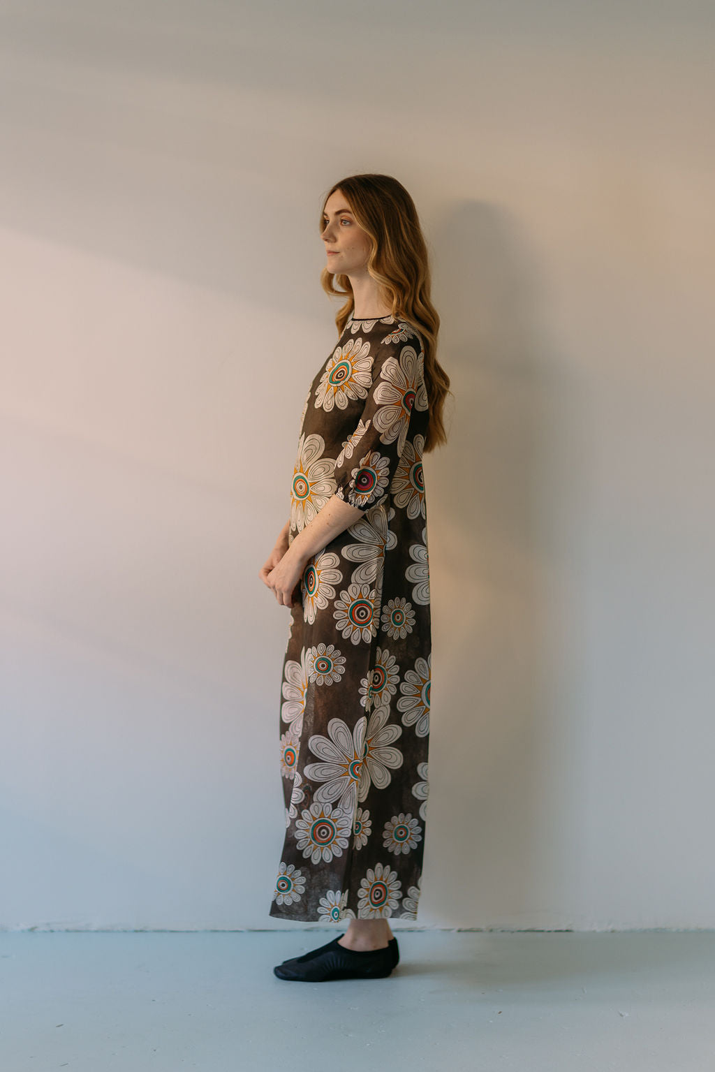 A rare floral printed paper dress, iconic and collectible. Made by James Sterling Paper Company NY.
