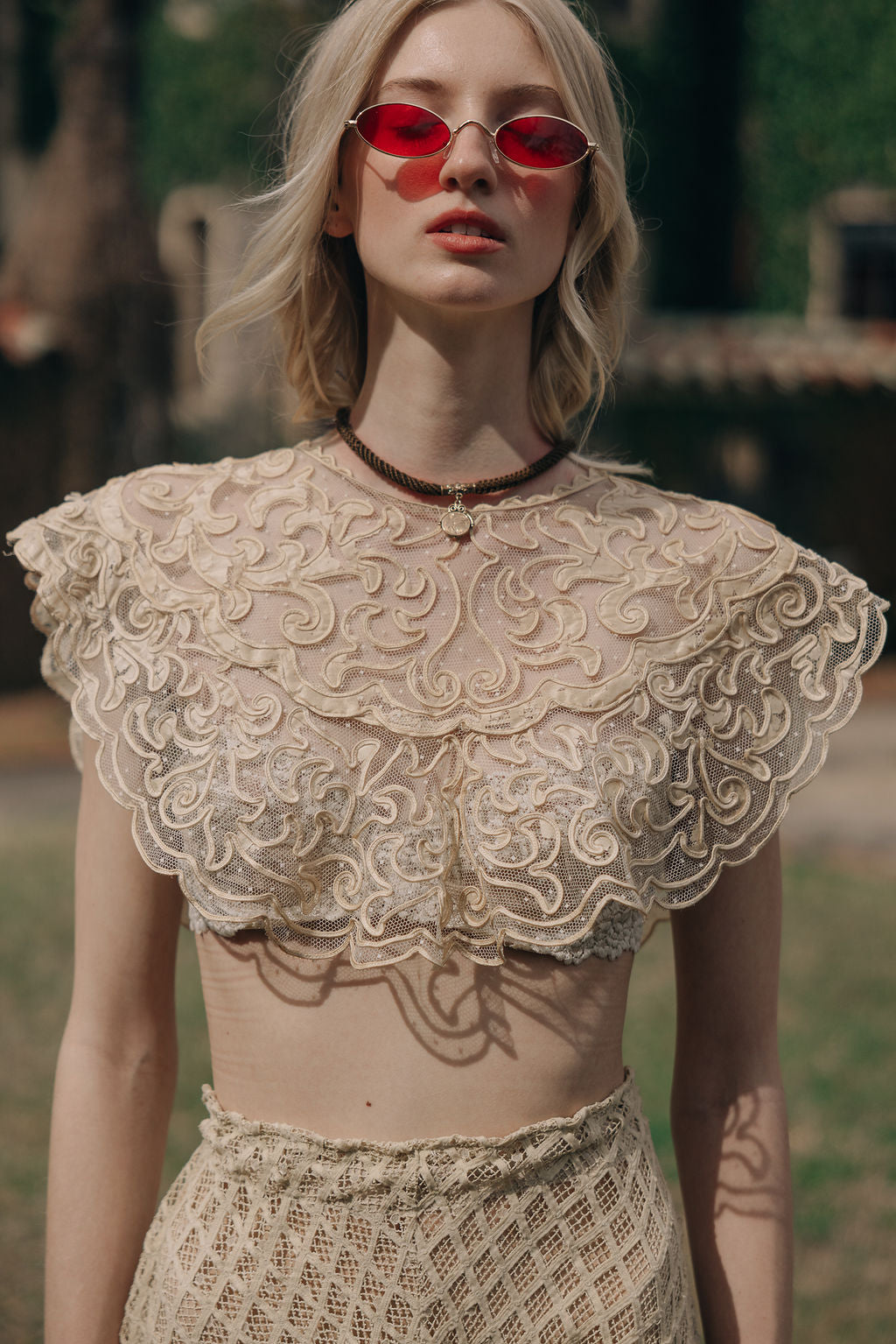 1900s lace appliqué collar blouse