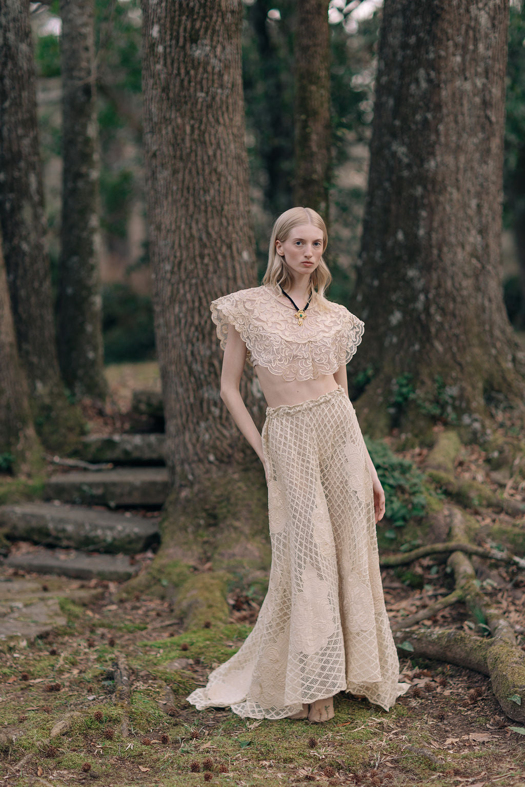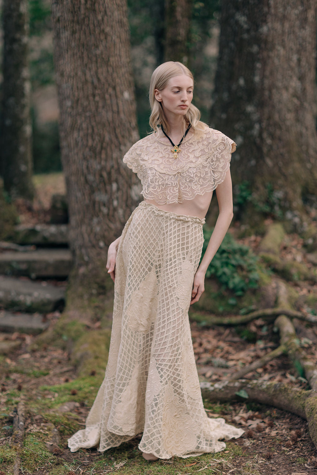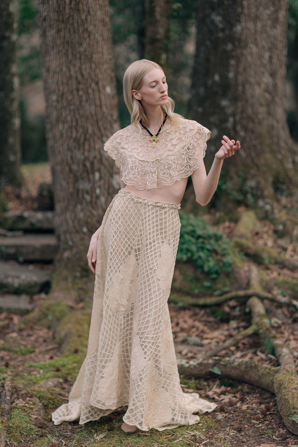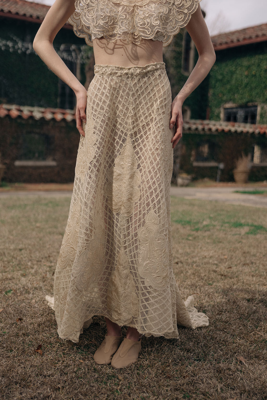 1900s silk lace appliqué skirt